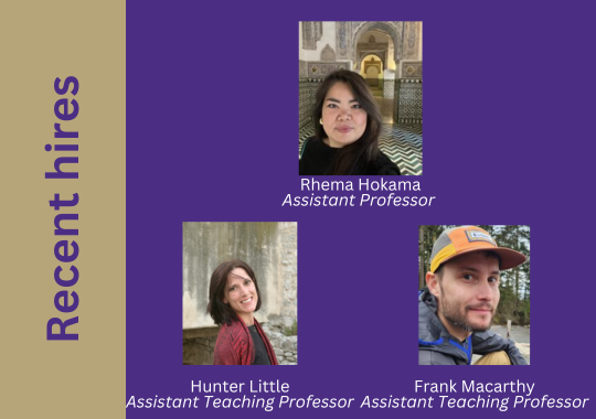 In 2025, the English Department welcomed three remarkable new faculty members: Rhema Hokama (Assistant Professor of English Literature), Hunter Little (Assistant Teaching Professor in the Program for Writing Across Campus and Program for Writing and Rhetoric), and Frank Macarthy (also Assistant Teaching Professor in PWAC and PWR). For this article, English's newest colleagues responded to interview questions about their work. As you’ll see from their responses, they bring scholarship and teaching that promises to enrich UW’s intellectual community and shape the future of literary and writing studies at the university and beyond.